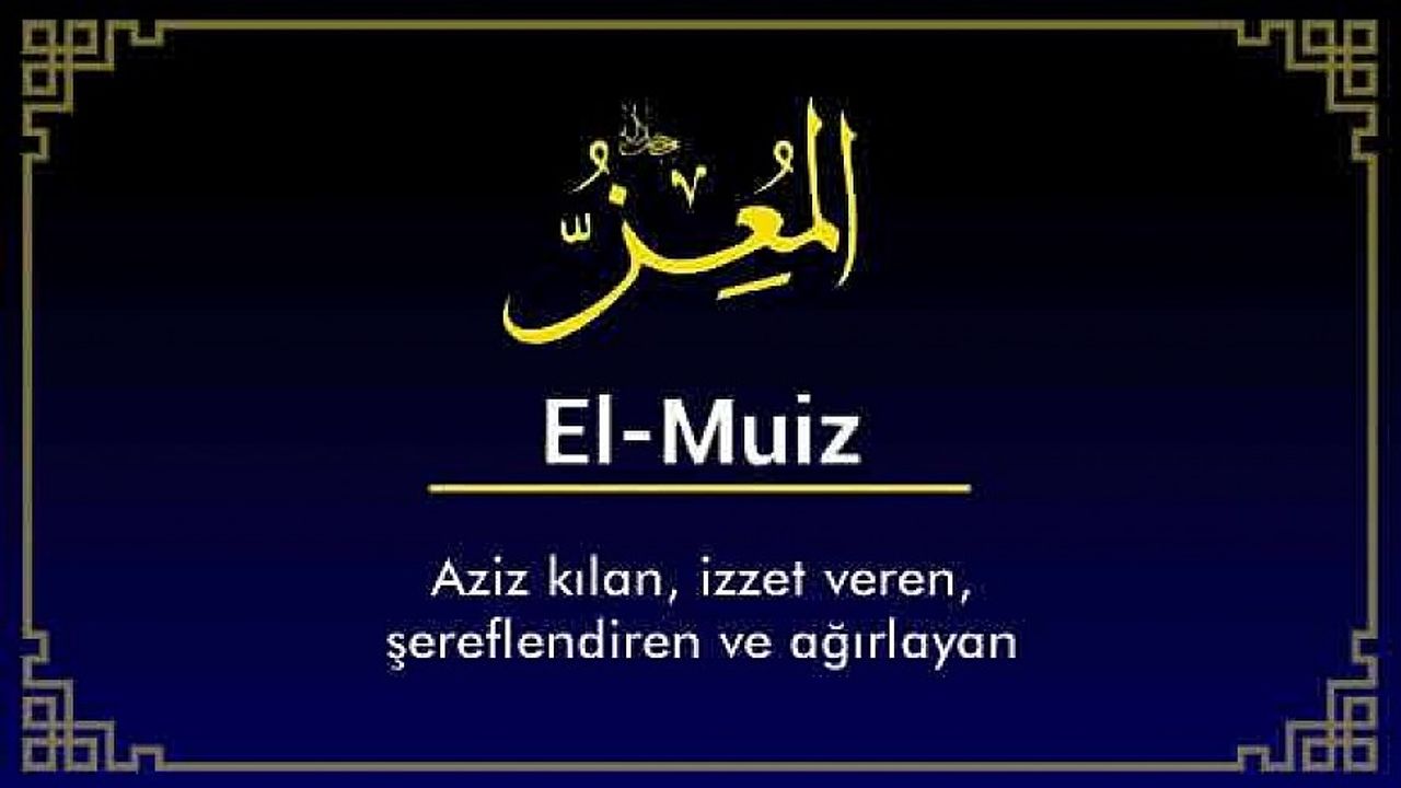 Esma-ül Hüsna'da yer alan Allah'ın isimlerinin başına El-, Ya-, Ey-, ekleri gelerek ifade edilmektedir. El-Muiz esması anlamı ile Allah'ın yüceliğini ifade eden isimlerden birisidir.