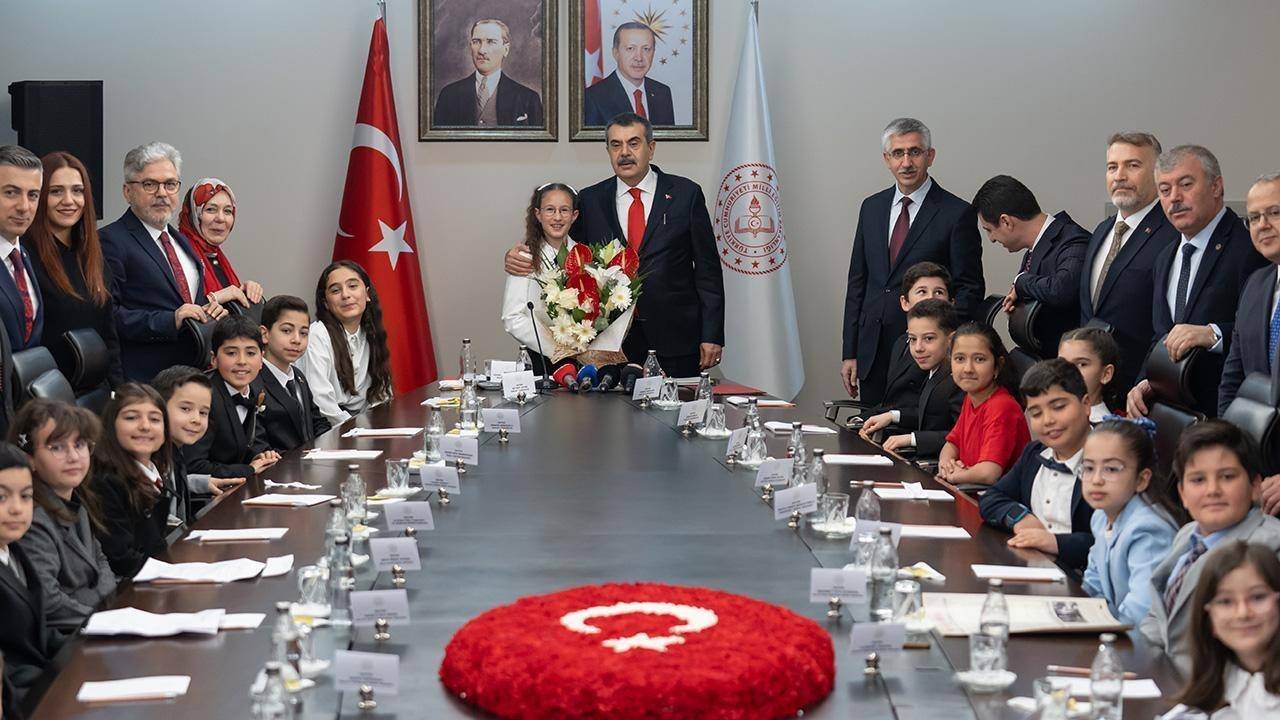 Bakan Tekin, Türkiye Büyük Millet Meclisinin açılışının 106. yıl dönümü ile 23 Nisan Ulusal Egemenlik ve Çocuk Bayramı dolayısıyla çeşitli okullardan gelen öğrencileri kabul etti.
