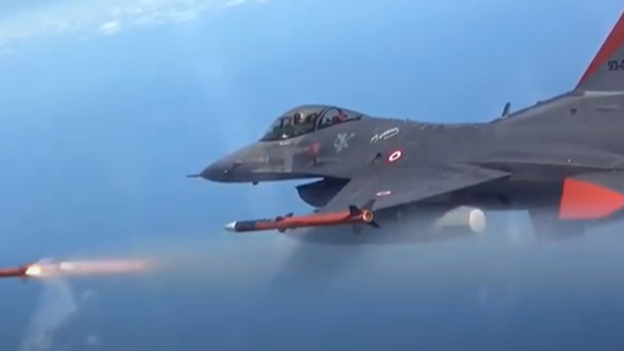 Görüntülerde, hava ikmali yapılan F-16'ların başarılı bir şekilde Bozdoğan füzelerini fırlatması yer alıyor.