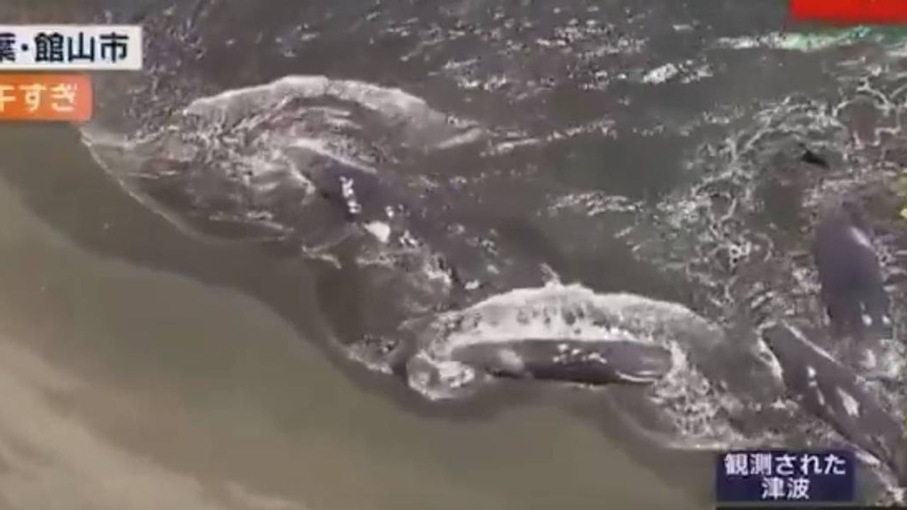 Rusya'nın Kamçatka Yarımadası açıklarındaki 8,8'lik deprem sonrası Japonya'da tsunami dalgaları ile balinaların kıyıya vurdu.