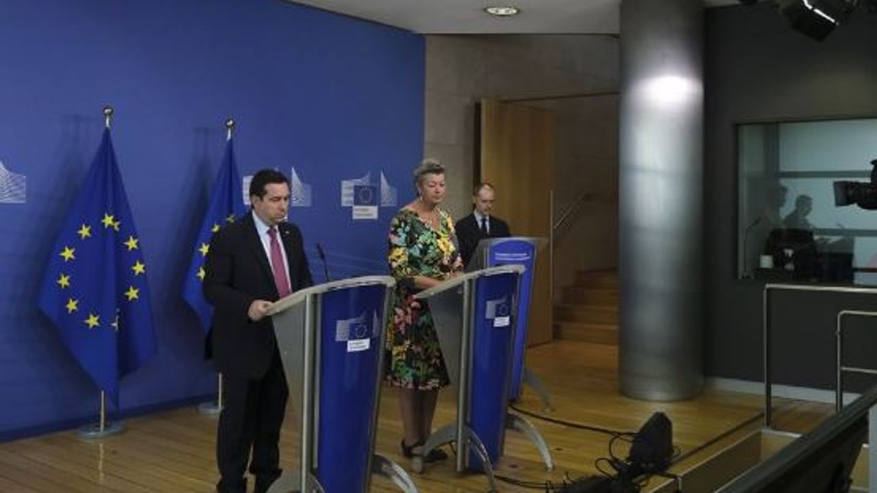 Yunanistan Göç ve Sığınma Bakanı Notis Mitarakis ile Avrupa Komisyonu'nun İçişlerinden Sorumlu Üyesi Ylva Johansson, bugün Brüksel'deki görüşmelerinin ardından gazetecilerin karşısına geçtiğinde, Türkiye sınırında denenen ses toplarıyla ilgili anlaşmazlık görüntüsü çizdi.