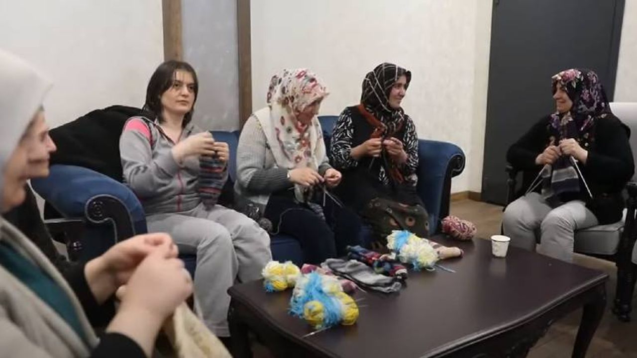Başkent Öğretmenevi'nde misafir edilen vatandaşlar, afetin yarattığı travmanın ağır yükünü atlatmak için uğraş terapisi kapsamında ördükleri çorap, atkı, bere ve yelekleri, depremzedelerin yaşadığı çadır ve konteyner kentlere gönderecek.