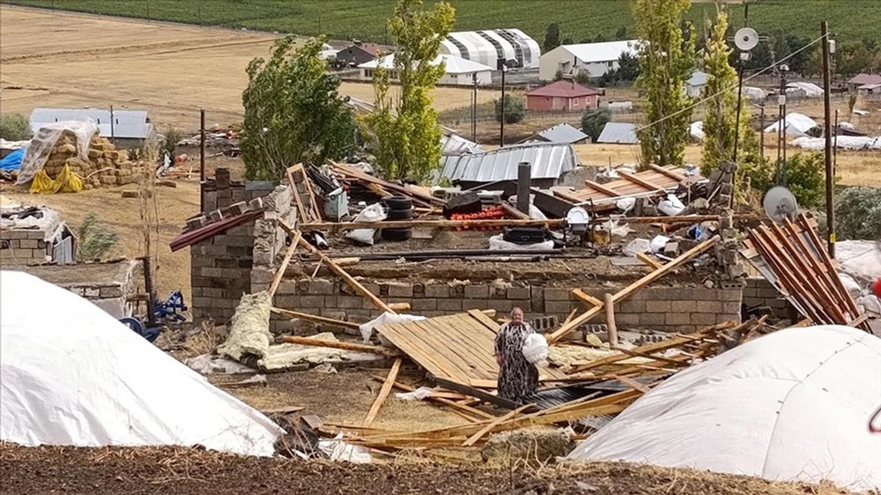 Ekipler köyde yaptıkları incelemede 44 ev ve 30 ahırın çatısının uçtuğunu tespit etti.