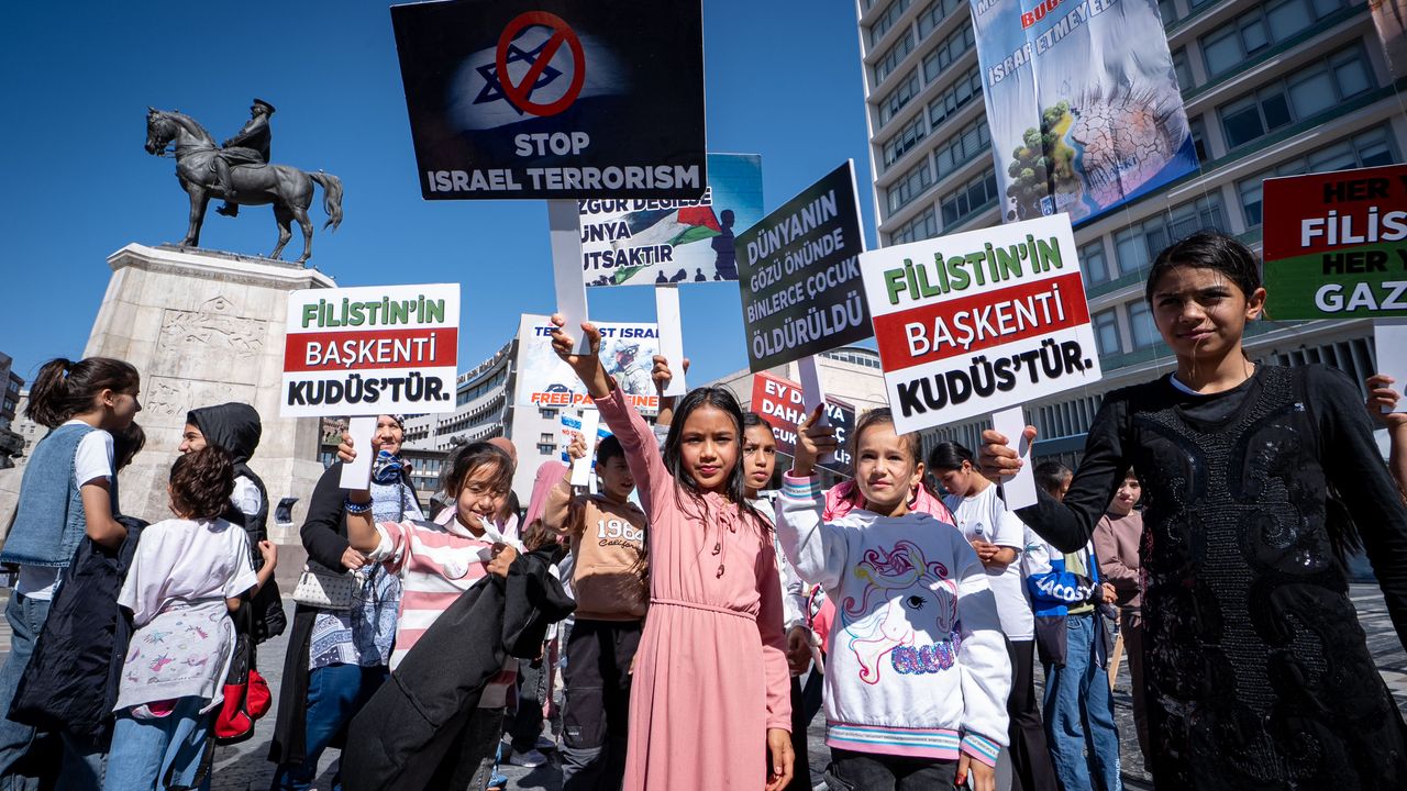 Gazze'de hayatını kaybedenlerin anısına meydanda resim sergisi de açan grup, ellerinde Filistin'e destek dövizleri ve bayraklar taşıdı. Altındağ Gençlik Merkezi öğrencileri ve öğretmenleri de gruba eşlik etti.
