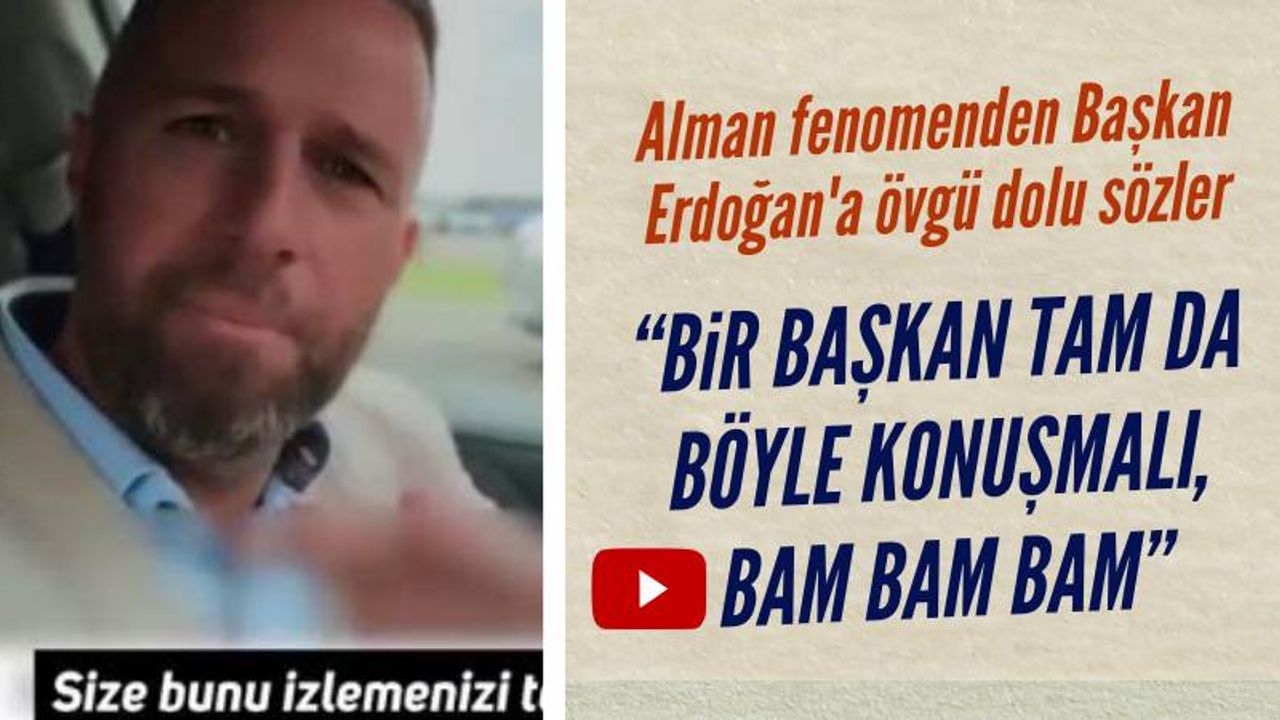 Alman fenomen çektiği video ile ile Cumhurbaşkanı Erdoğan için övgüler yağdırırken, "Ülkesiyle gurur duyan, güç ve özgüven ileten bir lider. Bir başka ülkenin başkanı bizim politikacılardan daha çok parıltı ve ışık saçıyor." ifadelerini kullandı.