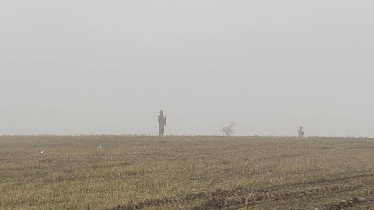 Ekipler, balçık arazide, yoğun sis altında çalışmalarını sürdürüyor.