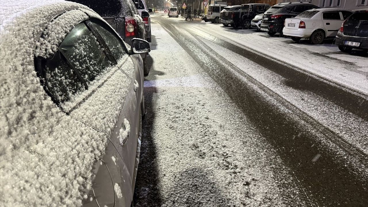Kar yağışıyla birlikte çevre ve park halindeki araçlar karla kaplandı.