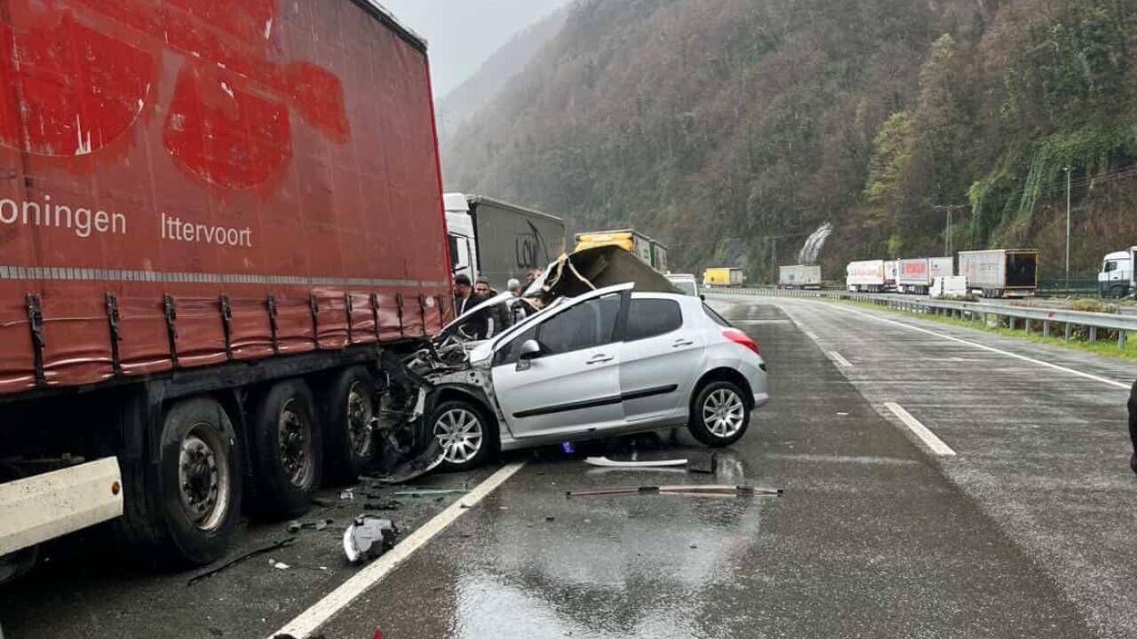Karadeniz Sahil Yolu'nun Hopa-Kemalpaşa arasındaki Kopmuş mevkisinde, İ.A'nın kullandığı otomobil, park halindeki yabancı plakalı tıra çarptı.
