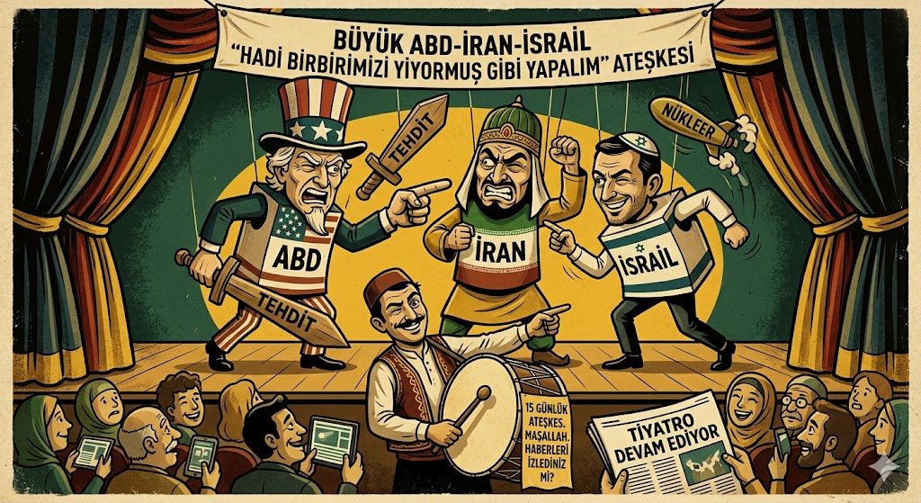 Konumuz, son günlerin en büyük tiyatrosu: Büyük ABD-İran-İsrail "Hadi Birbirimizi Yiyormuş Gibi Yapalım" ateşkesi.
