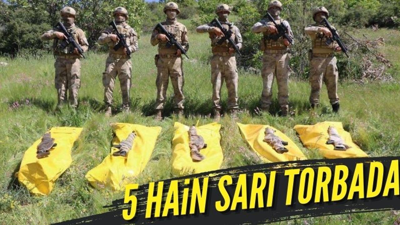 "Şehitlerimizin intikamı alındı. Şırnak Bestler Dereler Bölgesi'nde başlatılan operasyonda toplam 5 TERÖRİST SARI TORBADA. Terörün de kökünü kurutana kadar devam."