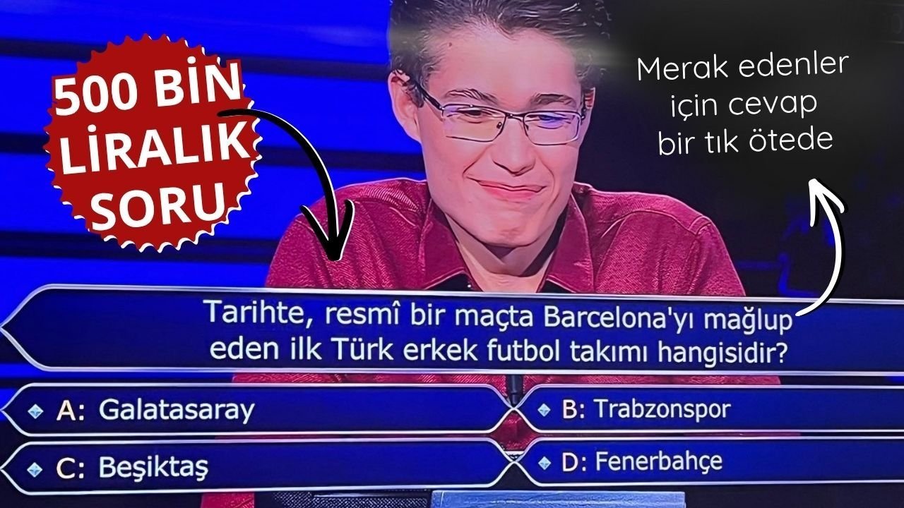 Sevilen bilgi yarışması 'Kim Milyoner Olmak İster?' programında yarışmacıya yöneltilen 500 bin TL değerindeki soru, Türk futbol tarihine dair zor bir bilgi sorusu oldu.