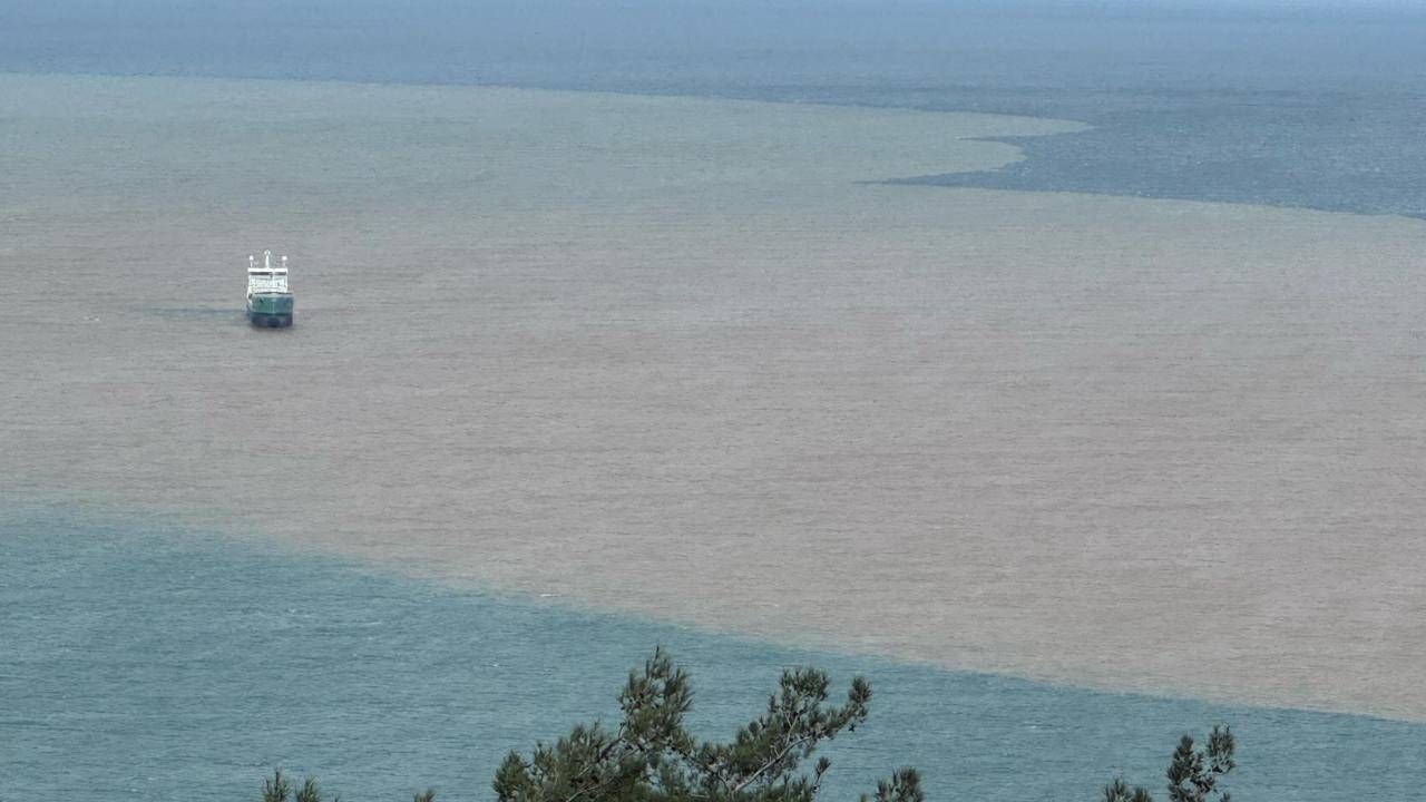 Çamurlu suyun aktığı kesim ile geniş alanda denizin rengi değişti.