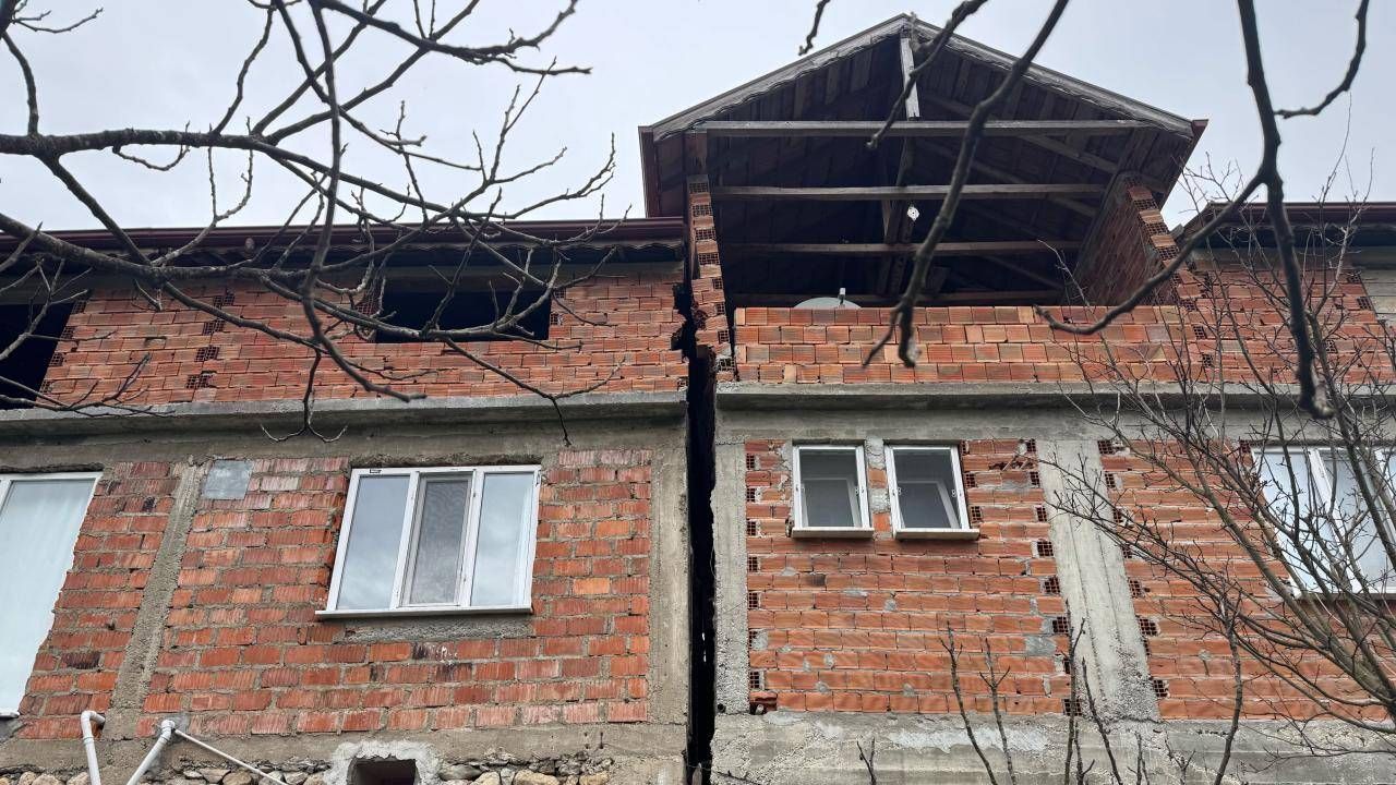 Beton yolda oluşan çatlakların yanı sıra yol kenarındaki 3 evin zemin ve duvarlarında da çatlaklar meydana geldi.