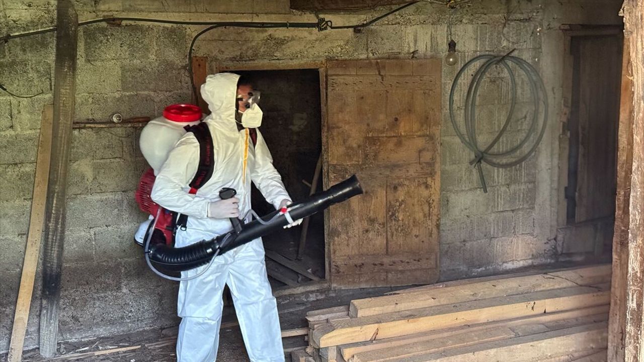 Fındıkta zarara neden olan kahverengi kokarcayla mücadeleye yönelik İl Tarım ve Ormancılık Müdürlüğü tarafından merkeze bağlı Kabagöz köyünde düzenlenen program kapsamında metruk ahşap evlerde ilaçlama çalışması yapıldı.