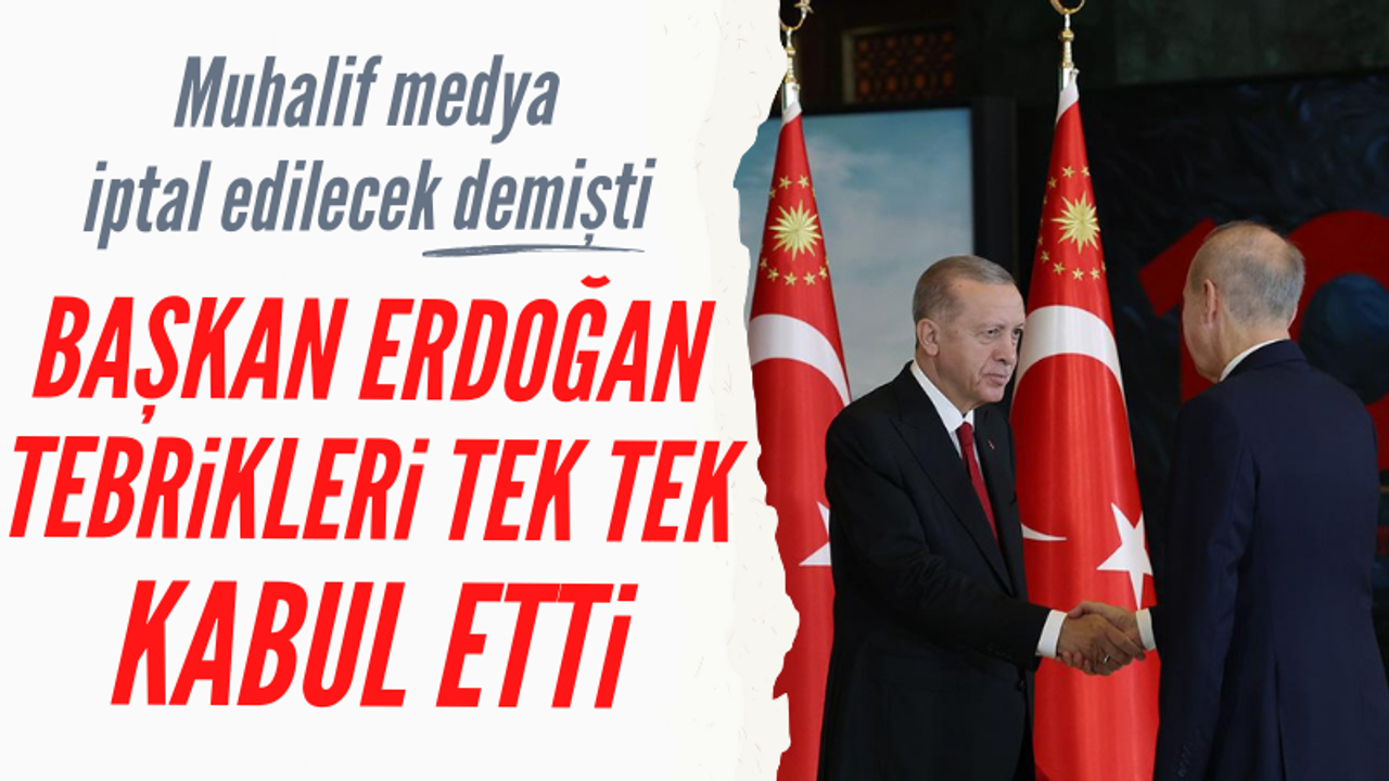 Cumhurbaşkanı Erdoğan'ın tebrikleri kabul ettiği alanda, Gazi Mustafa Kemal Atatürk'ten Cumhurbaşkanı Recep Tayyip Erdoğan'a kadar görev yapan tüm cumhurbaşkanlarının yağlı boya portreleri yer aldı.