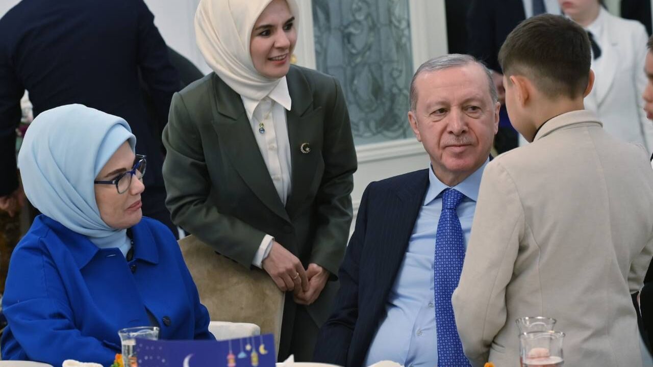 Çocuklar, daha sonra Cumhurbaşkanı Erdoğan'a ve eşi Emine Erdoğan'a, "Tayyip amca, Emine teyze, sizinle iftar açmak çok güzel. Sayenizde sıcacık yuvalarda kalıyoruz, sevgiyle büyüyoruz." ifadelerinin yer aldığı şükran bildiren mektuplarını takdim etti.