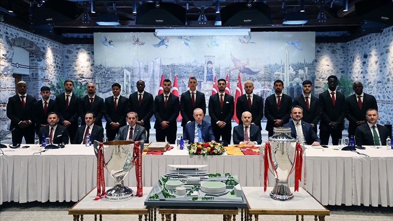 Trendyol Süper Lig'de 2024-2025 sezonu şampiyonu Galatasaray'ın heyetini Cumhurbaşkanlığı Dolmabahçe Çalışma Ofisi'nde kabul eden Erdoğan, sosyal medya hesabından paylaşımda bulundu.