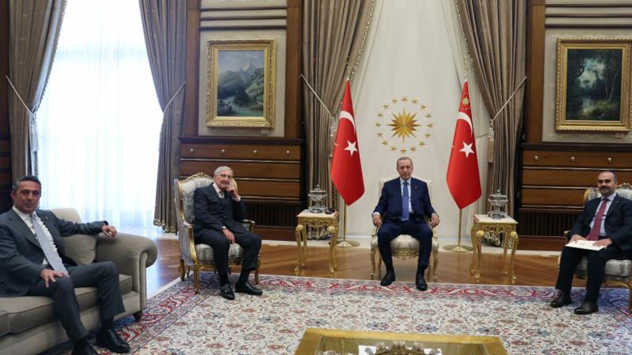 Cumhurbaşkanı Recep Tayyip Erdoğan, Sanayi ve Teknoloji Bakanı Mehmet Fatih Kacır ile iş dünyasının önde gelen isimleri Rahmi Koç ve Ali Koç'u Cumhurbaşkanlığı Külliyesi'nde ağırladı.