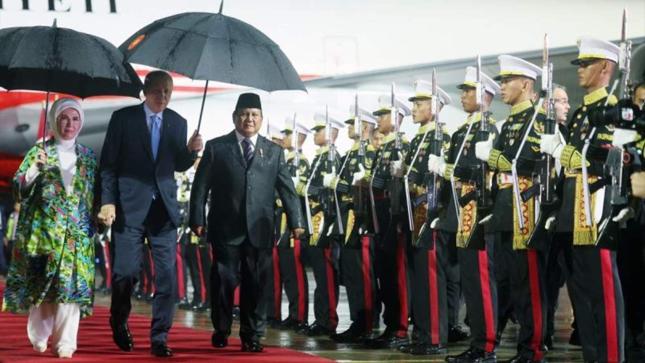 Cumhurbaşkanı Erdoğan, Endonezya'nın başkenti Cakarta'daki Halim Perdanakusuma Askeri Havalimanı'nda, Endonezya Cumhurbaşkanı Prabowo Subianto, Türkiye'nin Cakarta Büyükelçisi Talip Küçükcan ve yetkililer tarafından karşılandı.