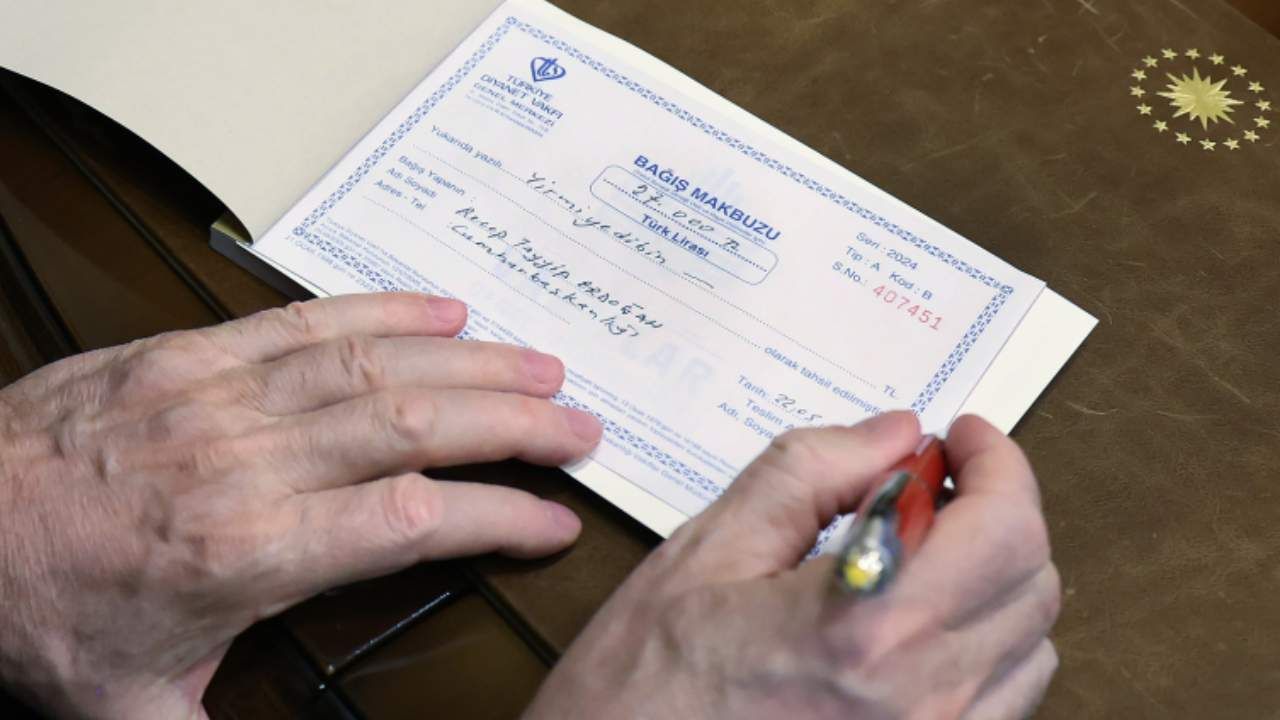Cumhurbaşkanı Erdoğan, kurban vekaletine ilişkin bağış makbuzunu da imzaladı.