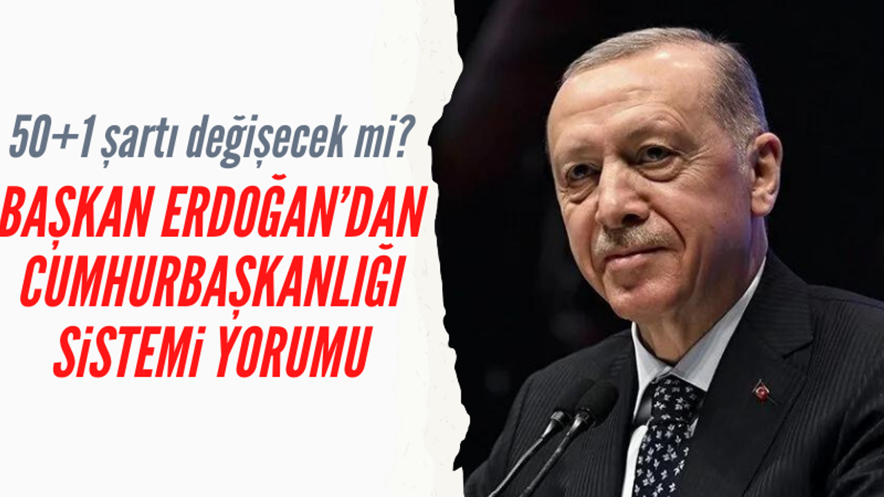 Cumhurbaşkanlığı sistemine ilişkin önemli açıklamalarda bulunan Erdoğan, "50+1 şartının değişmesi konusunda aynı fikirdeyim, isabetli olur. Çoğunluğu alan adayın seçilmesi usulüne geçilmesi halinde Cumhurbaşkanlığı seçimi de seri olur, uğraştırmaz ve yanlış yollara da sevk etmez." dedi.