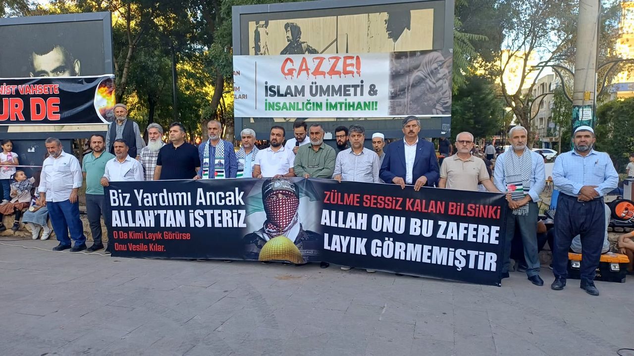 Davet ve Kardeşlik Derneği üyesi Mehmet Emin Şimşek, grup adına yaptığı açıklamada, Gazze'de yaşananlara karşı dünya kamuoyunun sessiz kalmaması gerektiğini söyledi.
