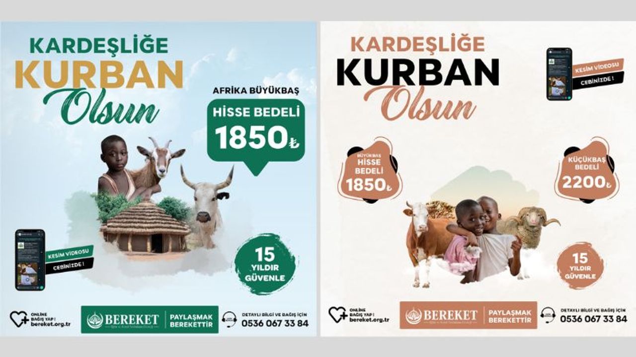 Bereket Derneği 15 yıl olduğu gibi bu yılda vacip kurban organizasyonu kapsamında bereket.org.tr web sitesi üzerinden online olarak kurumsal web sitesi üzerinde bulunan hesap numaraları üzerinden havale yoluyla veya 0 212 809 66 27 numaralı telefon numarasından bilgi alarak bağışlarım yapabilecekler.
