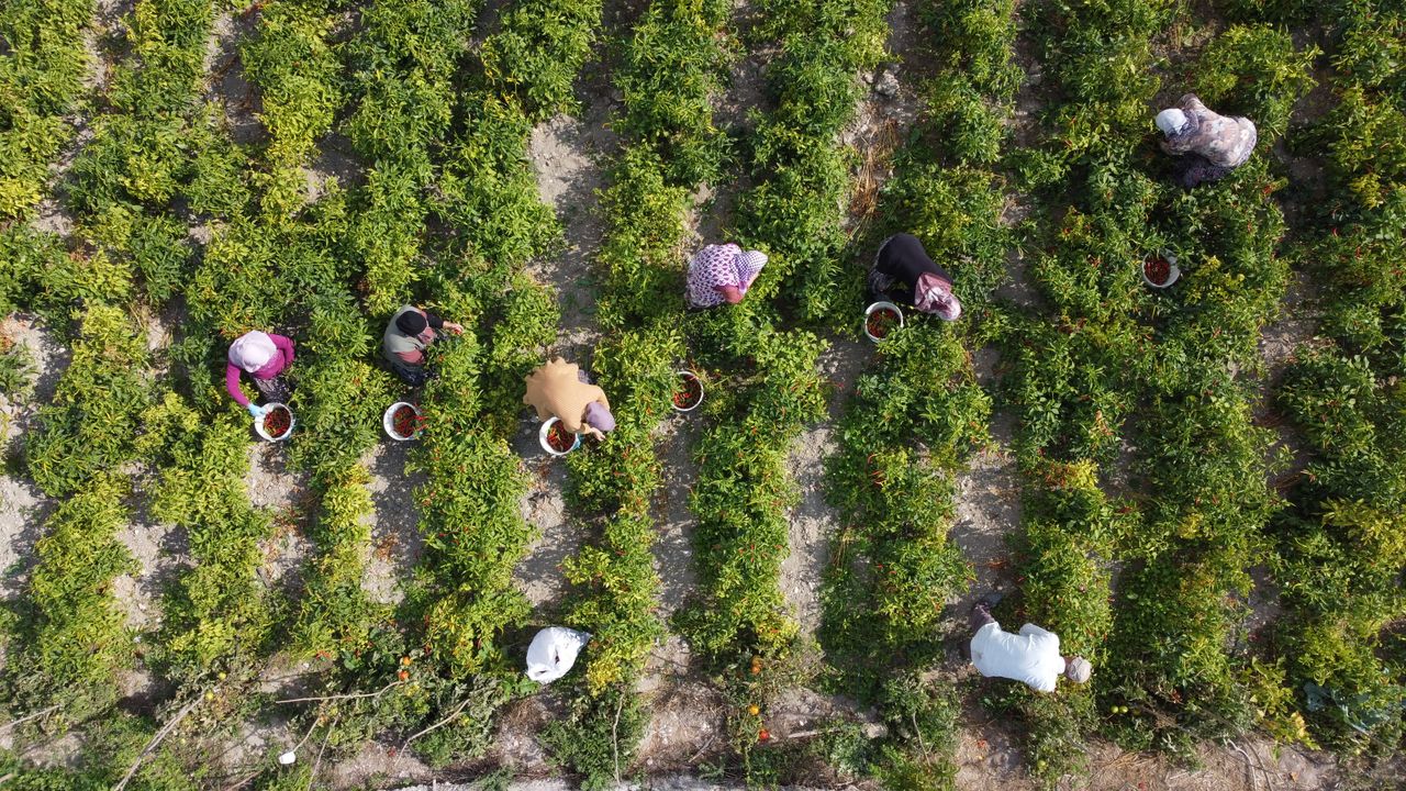 'Mart ayında tohumları çimlendiriyoruz. Nisan ve mayıs aylarında da bahçelere dikiyoruz. 1-2 ay böyle devam ediyor. Biberler ağustos ortasında kızarmaya başlıyor. Eylülde toplamaya başlıyoruz, iplere diziyoruz ve kurumaya bırakıyoruz. Pazarlamasını da kendimiz yapıyoruz.'