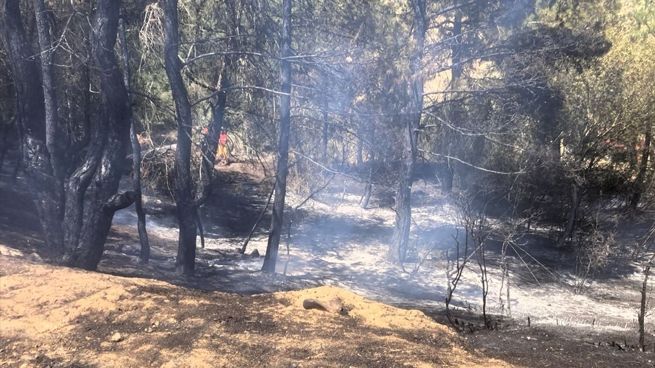 Yaklaşık bir saatlik çalışmanın ardından kontrol altına alınan yangında, 1,5 dönümlük ormanlık zarar gördü.