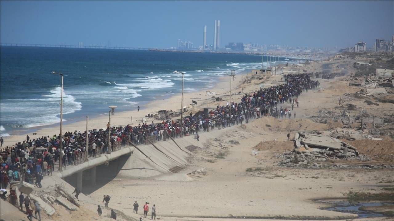 Filistinliler dönüş yolunda Gazze’nin orta ve güney bölgelerinden kuzeyine geçişi sağlayan Reşid Caddesi'ni kullanıyor.