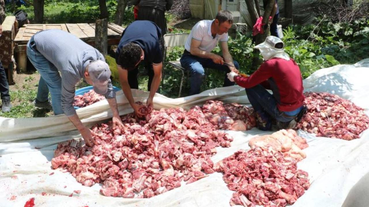 Bayram namazı sonrası, köy meydanına getirilen 100 küçükbaş hayvan kesilip, etleri eşit bir şekilde ayrıştırıldı. Kurbanlık etler, daha sonra köydeki 200 haneye dağıtıldı.