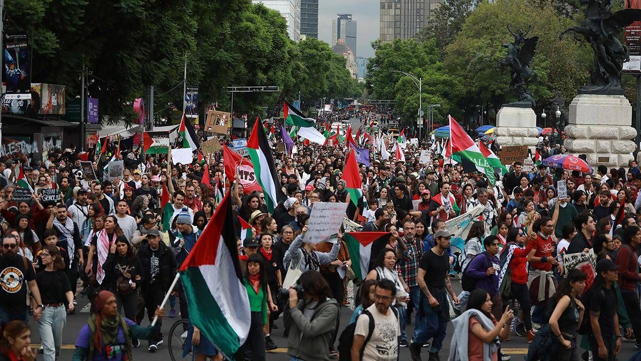 Meksika'nın başkenti Meksiko'da bir araya gelen Filistin destekçileri, Gazze'de ateşkesin "en hızlı şekilde" ilan edilmesi için gösteri düzenledi.