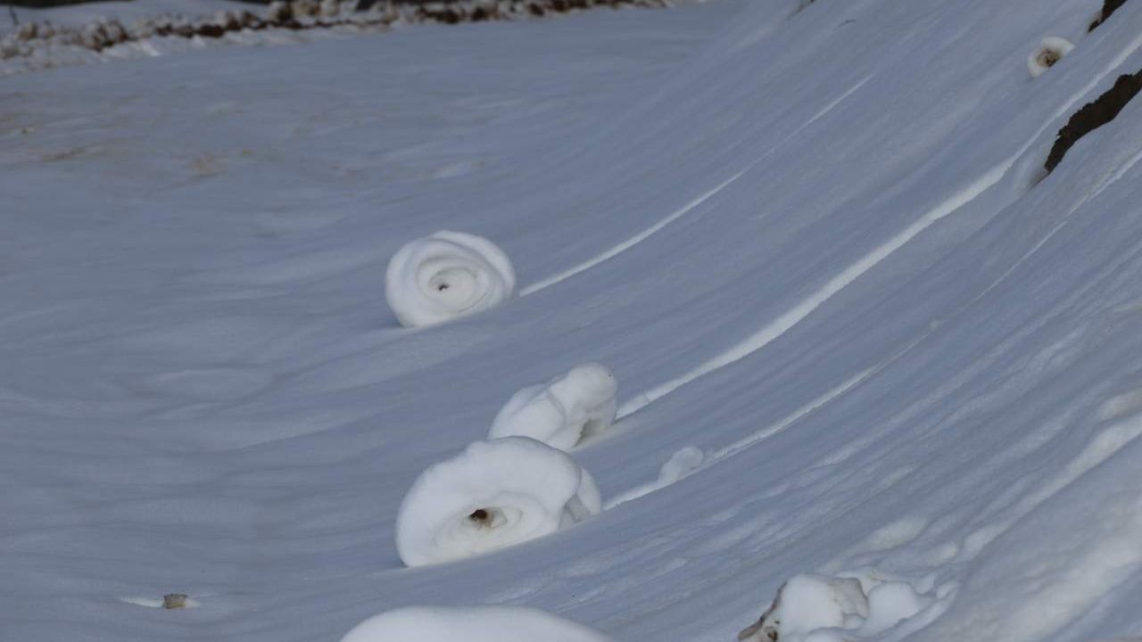 Kar rulolarının, rüzgarın zemindeki karı yüzeyden koparıp yuvarlamaya başlamasıyla oluştuğu tahmin ediliyor.