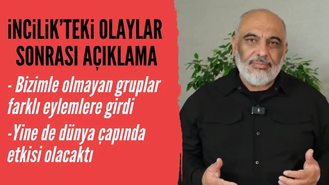 İHH Başkanı Bülent Yıldırım, Adana'daki İncirlik Üssü'nün çevresinde meydana gelen olaylarla ilgili açıklama yaptı. Yıldırım, ''İrademizin dışındaki bazı gruplar farklı eylemlere girdiler. Bu nedenle mitingi bitirmek zorunda kaldık'' dedi.