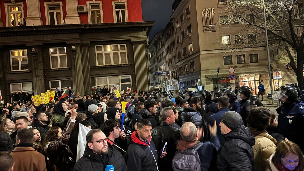 Yaklaşık 3 saat süren protesto sırasında Bulgaristan ve Avrupa Birliği (AB) bayrakları taşıyan göstericiler, üçlü koalisyonu oluşturan Bulgaristan'ın Avrupalı Gelişimi İçin Yurttaşlar (GERB), Bulgaristan Sosyalist Partisi (BSP) ve Böyle Bir Halk Var (ITN) Partisi ile hükümeti dışarıdan destekleyen Hak ve Özgürlükler Hareketi-Yeni Başlangıç Partisi aleyhine slogan attı.