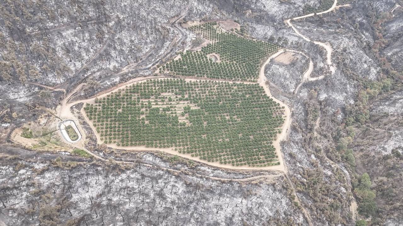 Nektarin bahçesi, etrafı küle dönen bölgede yeşil kaldı.
