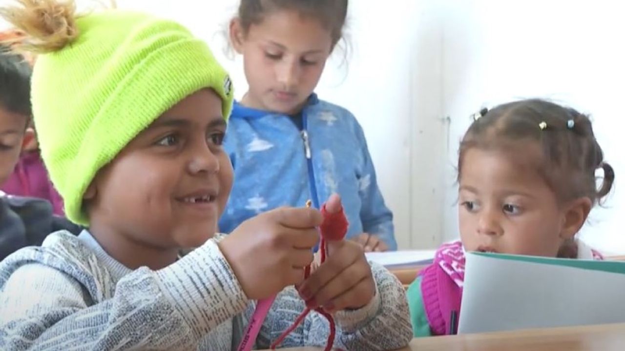 Mersin İl Milli Eğitim Müdürlüğü depremden etkilenen kentlerden biri olan Hatay'da yaraların sarılması için 'hayat boyu öğrenme mobil kursları' açtı. Kursun en hünerli öğrencisi ise 8 yaşındaki Fatma Nur oldu. Küçük kız, arkadaşlarıyla resim yapıp oyun oynadıktan sonra eline tığını alıp örgü örüyor.