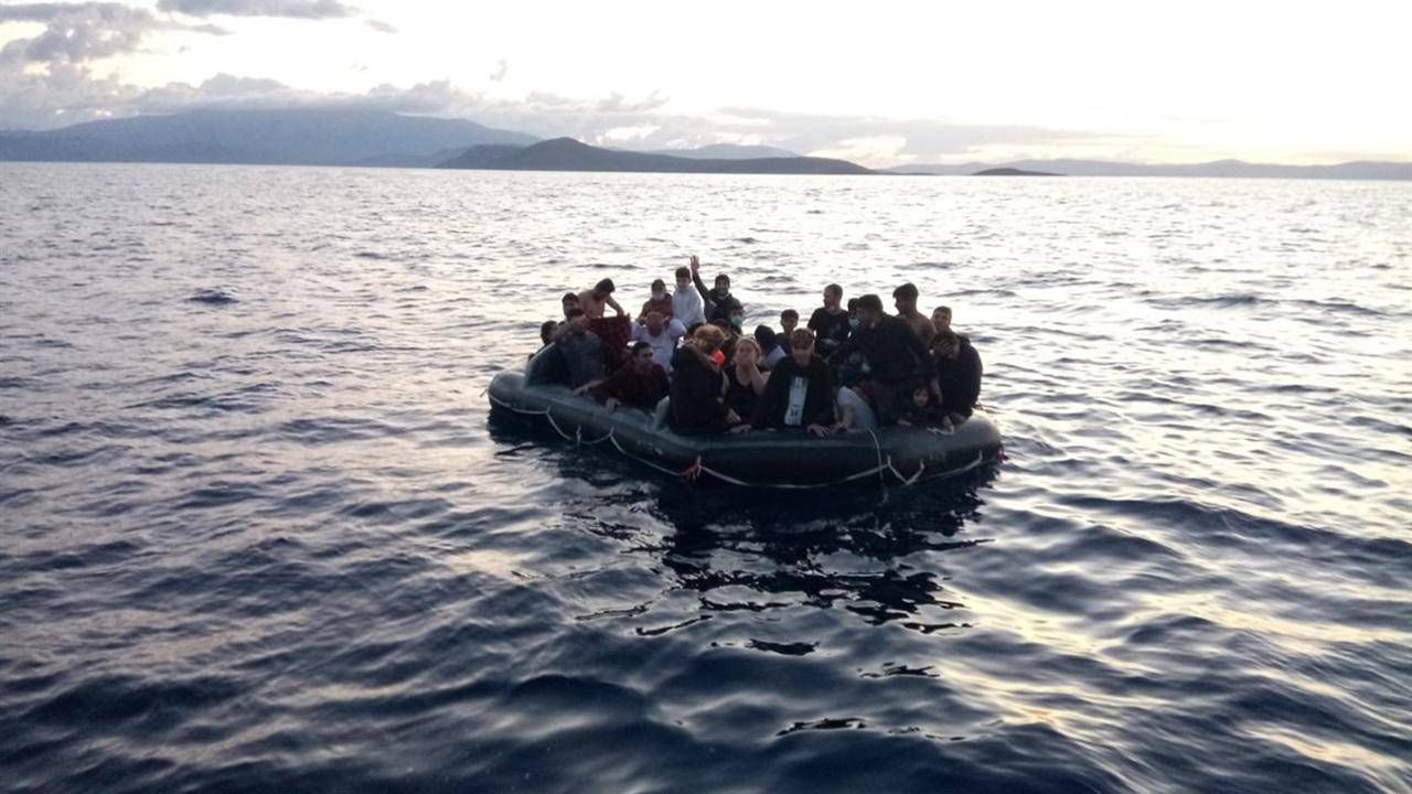 Ekipler, lastik bot içindeki 19'u çocuk 34 düzensiz göçmeni kurtararak karaya çıkardı.
