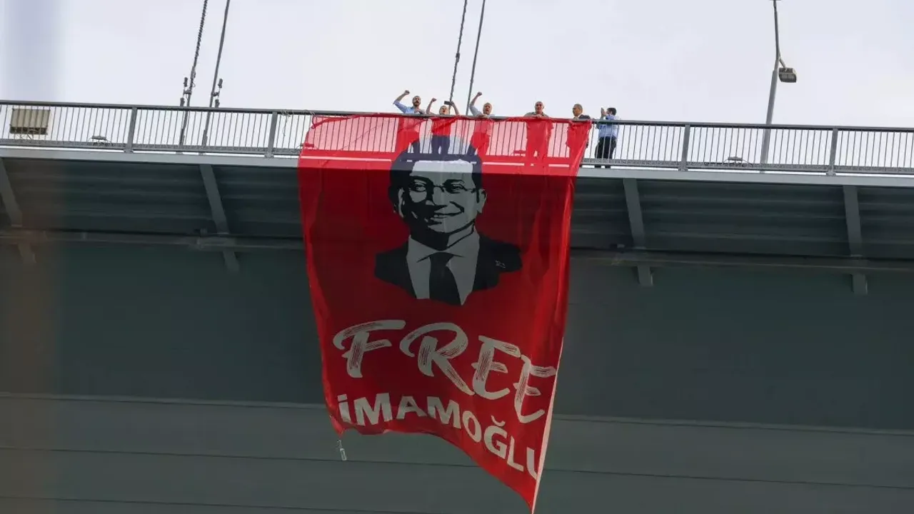 CHP Genel Başkan Yardımcısı Özçağdaş, Şanlıurfa Milletvekili Mahmut Tanal, İstanbul Milletvekilleri Nimet Özdemir ve Ali Gökçek, Tekirdağ Milletvekili İlhami Özcan Aygun ile Edirne Milletvekili Ahmet Baran Yazgan, akşam saatlerinde, yolsuzluk soruşturması kapsamında tutuklanarak İstanbul Büyükşehir Belediye Başkanlığı görevinden uzaklaştırılan Ekrem İmamoğlu'nun silüeti bulunan "Free İmamoğlu" yazılı pankartı köprüye astı.
