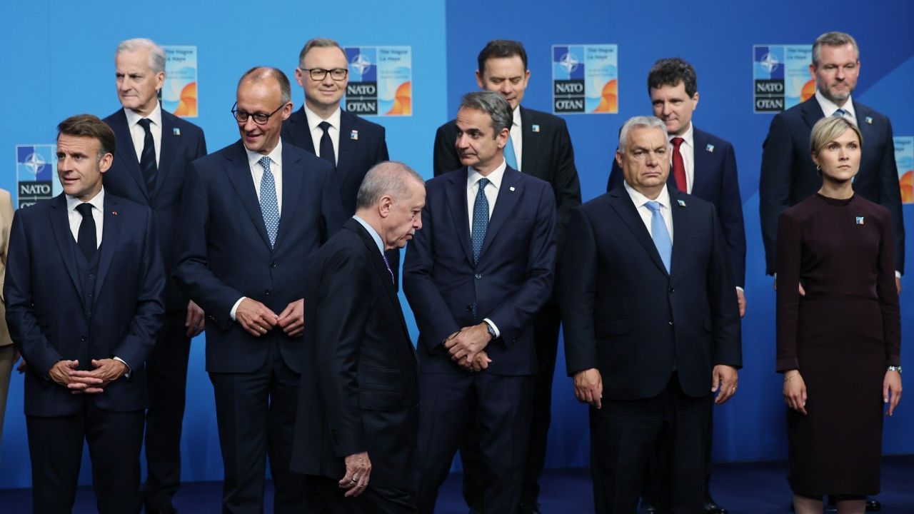 Hollanda'nın Lahey kentinde düzenlenen NATO Devlet ve Hükümet Başkanları Toplantısı öncesinde, zirvenin gerçekleştirildiği World Forum'da resmi karşılama töreninin ardından aile fotoğrafı çekildi.