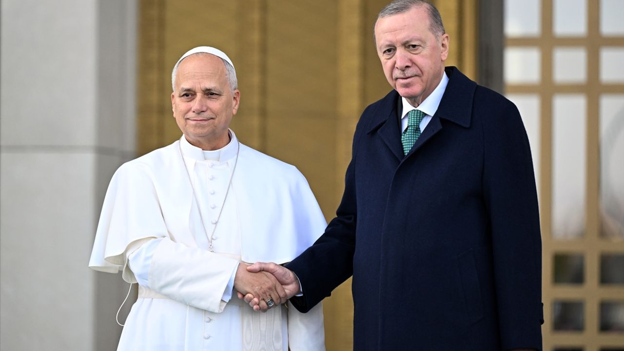 Cumhurbaşkanı Erdoğan ve Papa 14. Leo, birbirlerine heyetlerini takdim etti. Türkiye ve Vatikan bayrakları önünde gazetecilere poz veren Erdoğan ve Papa 14. Leo, daha sonra baş başa ve heyetler arası görüşmeye geçti.