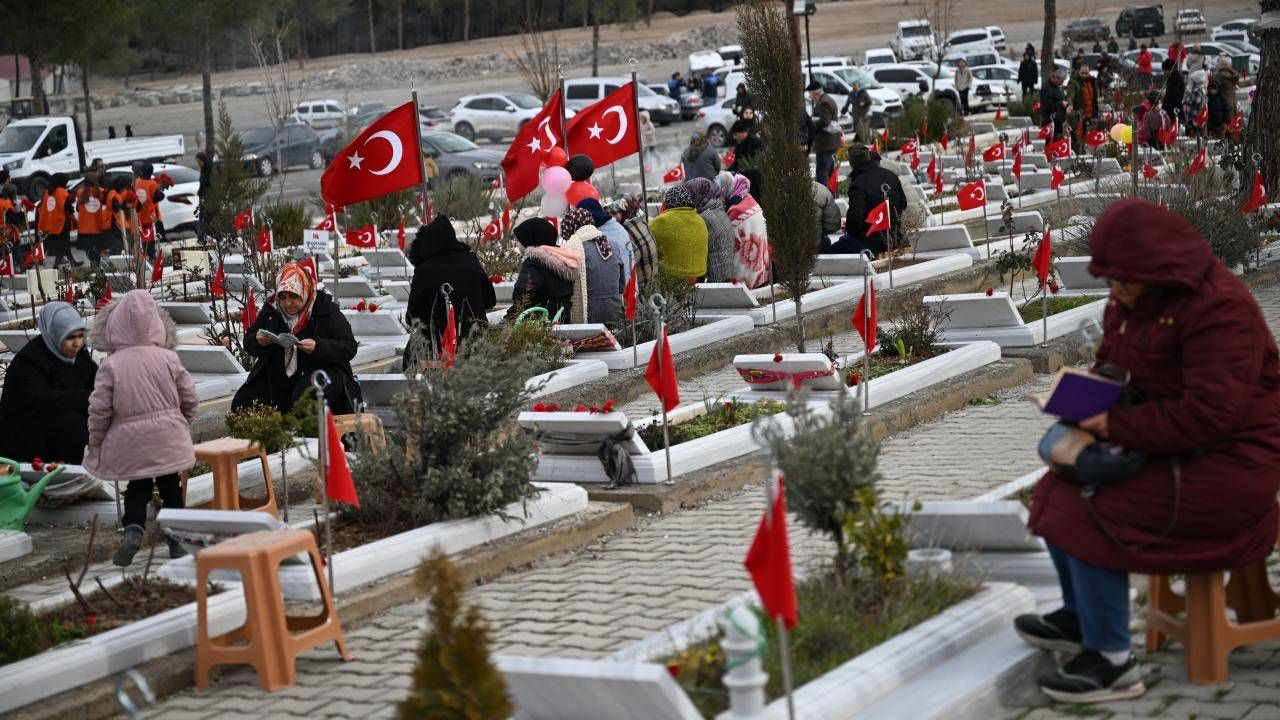 Yaşanan afetin 3. yılı nedeniyle geceden itibaren Kapıçam Şehir Mezarlığı'na giden vatandaşlar, depremlerde hayatını kaybeden yakınlarının kabirlerini ziyaret ediyor.