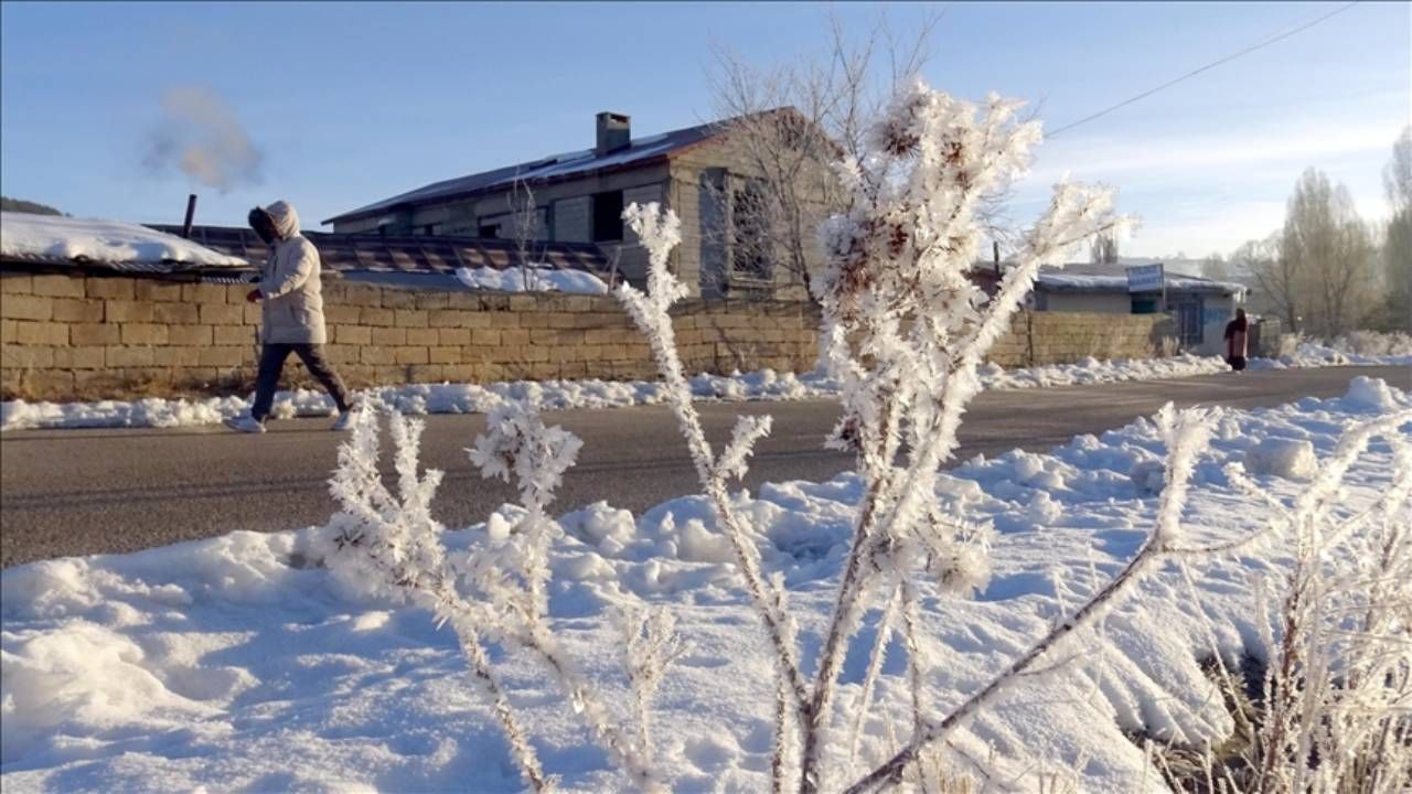 Gece hava sıcaklığının sıfırın altında 14 dereceye düştüğü Kars'ta, soğuk havanın etkisiyle sulak alanları buz kapladı, bitki ve ağaçlar kırağı tuttu.