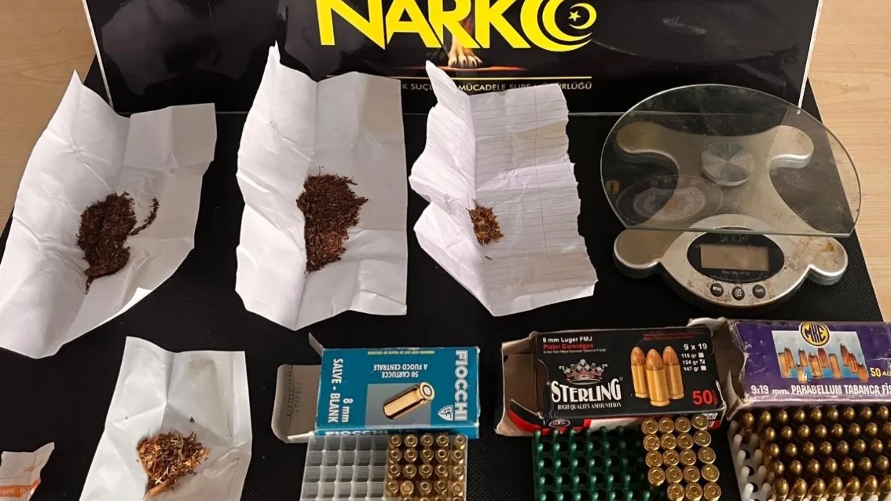 Aramalarda, 5 parça halinde toplam 15 gram sentetik kannabinoid (bonzai), 1 gram metamfetamin, 1 hassas terazi, uyuşturucu kullanımına yarayan 1 cam aparat, 61 adet 9x19 mm tabanca fişeği ve 28 adet kuru sıkı fişeği bulundu.