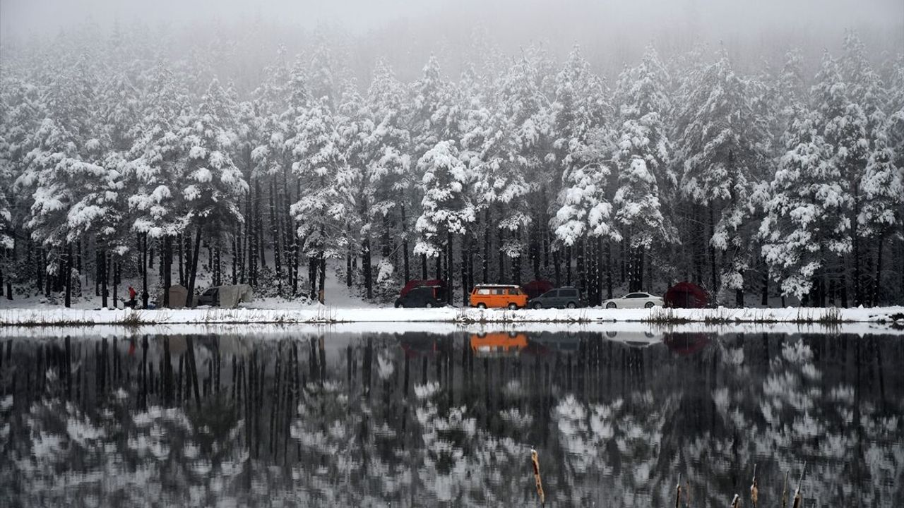 Doğaseverlerin tercih ettiği yerler arasında bulunan yaylada ve içinde barındırdığı göletin çevresinde kar yağışının ardından kış manzarası oluştu.