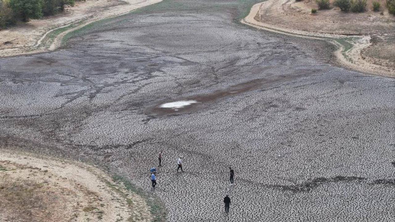 Kısa süreli sağanak geçişlerinin fayda sağlamaması ve göleti besleyen su kaynaklarının da kurumasıyla göletin suyu tamamen çekildi.