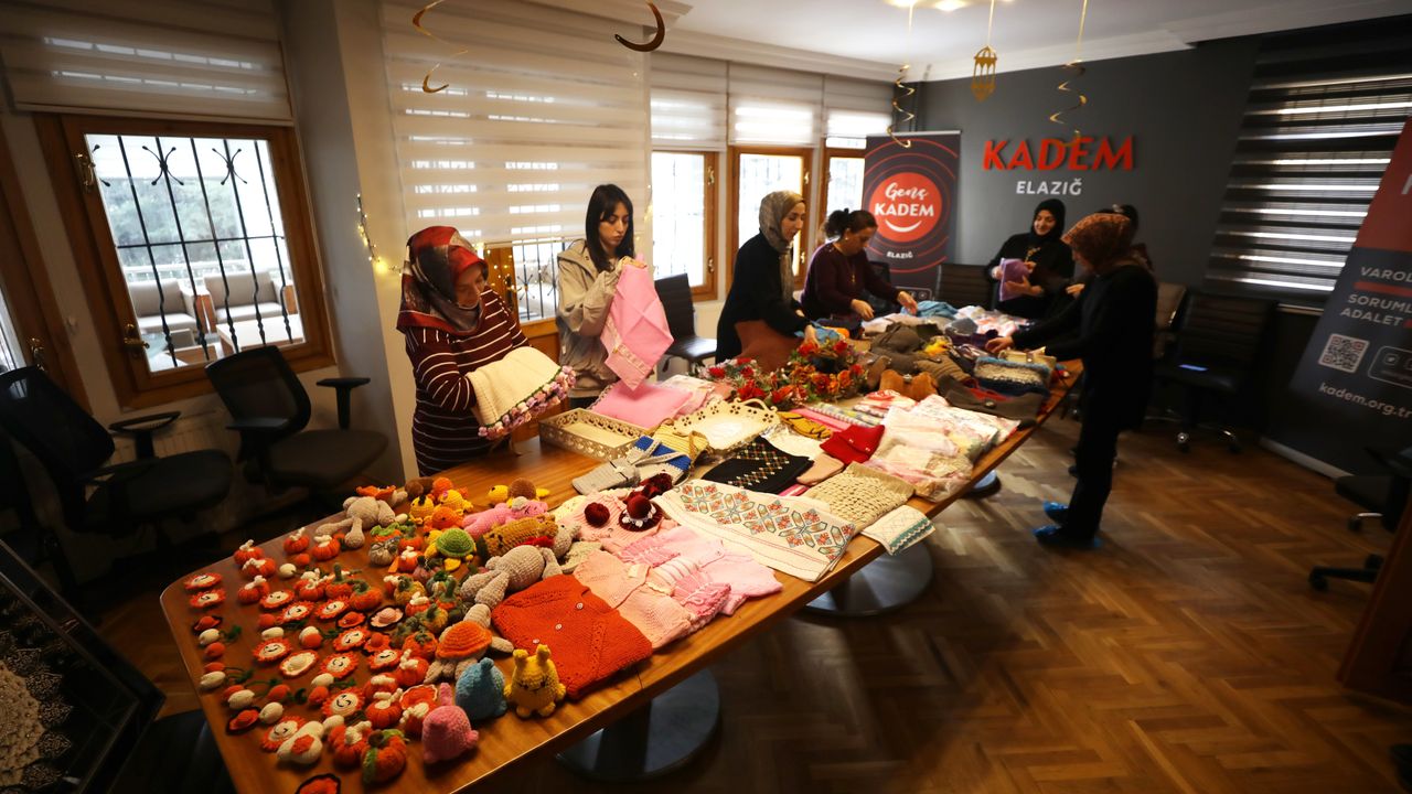 Kadın ve Demokrasi Vakfı (KADEM) tarafından Gazze halkına maddi ve manevi destek sağlamak için yaklaşık 2 yıldır devam eden kurslara katılan gönüllü kursiyerler, örgü, nakış, dokuma, takı, çanta, seramik, ahşap boyama, ev dekorasyonu gibi alanlarda birbirinden değerli el işi ürünler yapıyor.