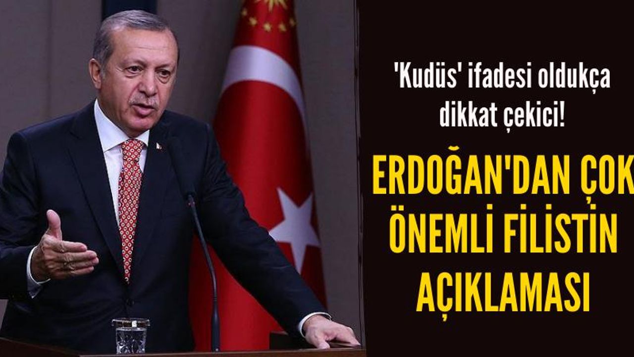Cumhurbaşkanı Erdoğan, Filistin'deki son olayları değerlendirdi, Filistin devletinin kurulmasının artık daha fazla ertelenemeyeceğini söyledi. Erdoğan'ın Filistin devletinin başkentinden bahsederken 'Doğu Kudüs' yerine 'Kudüs' demesi dikkat çekti.