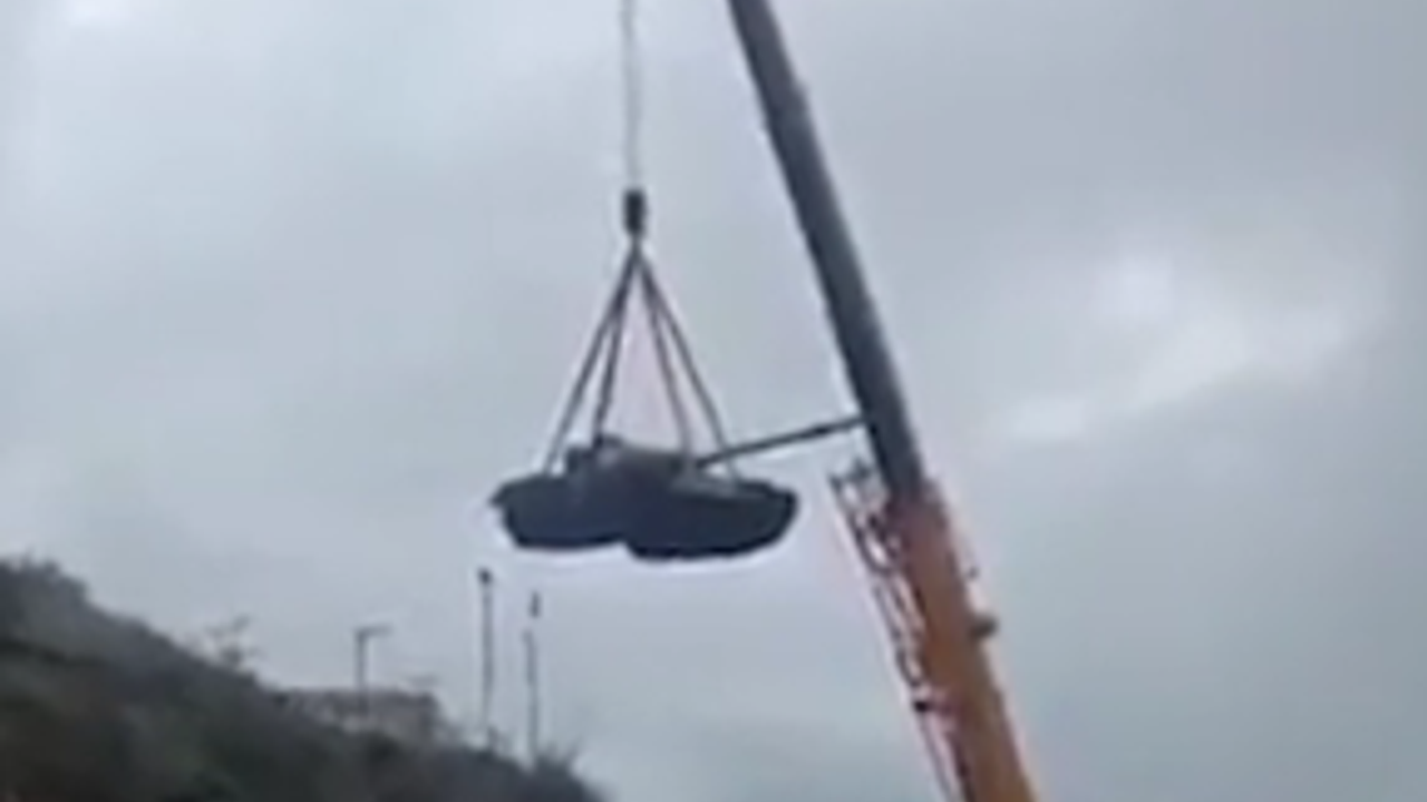 Şuşa-Hankendi bölgesinde yer alan tank, güvenlik güçlerince vinçle yerinden söküldü.