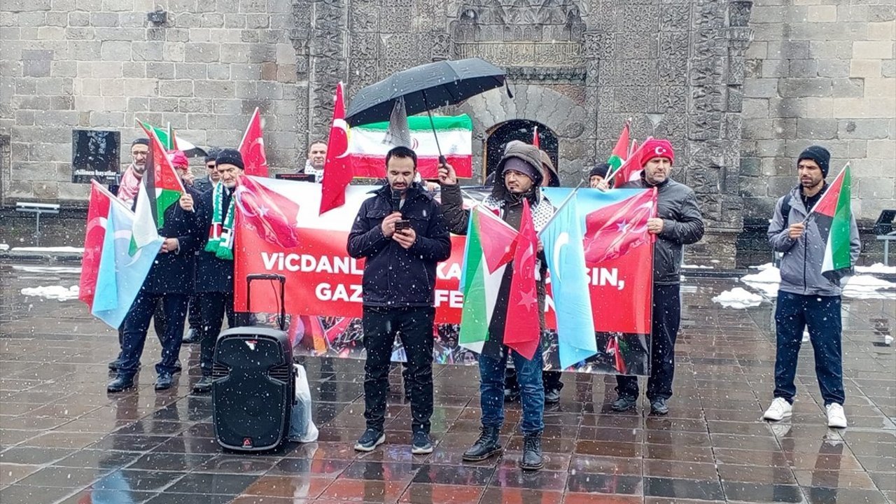 ERZURUM (AA) - Erzurum'da sağlık çalışanları, İsrail'in Gazze'ye yönelik saldırılarını protesto etmek ve yaşanan zulme dikkati çekmek amacıyla düzenledikleri sessiz yürüyüşlerini 126. haftada kar yağışı altında sürdürdü.